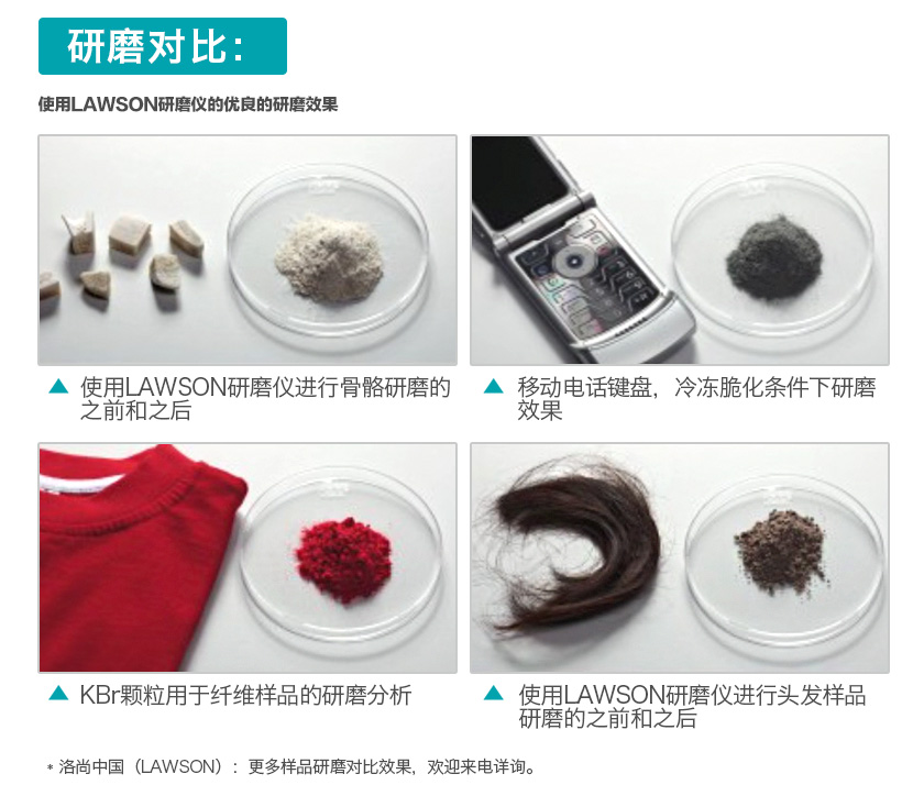 對(duì)于高韌塑料、高強(qiáng)塑料、樹脂等難研磨樣品,低溫研磨可大大提高研磨效果及效率