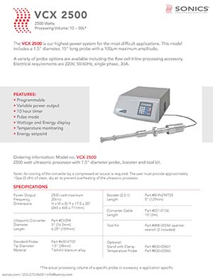 SONICS超聲波均質(zhì)機(jī) VCX2500 美國(guó)SONICS品牌-2022款